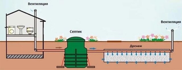 (не путать с антисептиком) Септик - это один из видов автономной канализации, часть локального очистного сооружения. В нем есть вход и выход. В септике происходит отстаивание канализационных стоков(фекалии, бытовая косметика, жир), все что тяжелое - падает на дно и превращается в ил, вода же перетекает в другую секцию, тк она не чистая и имеет запах, ей необходимо пройти почвенную доочистку. Для этого дополнительно к септику делают дренажный фильтр(выкапывается яма 3-4 метра шириной и делается фильтрационная подушка из щебня, песка и геотекстиля) или поле фильтрации(см.картинку) можно, чтобы грязная вода прошла по перфорированной трубе и вытекала в фильтры, а уже после ушла в почву, очищенная и не такая грязная. Подобрать септик 👉🏻 https://clck.ru/34JnDs или напишите нам в комментариях👇🏻