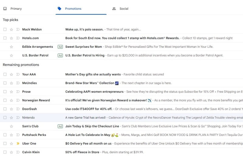 Хотя Gmail уже давно размещает рекламу в самом верху папок "Акции" и "Социальные", он никогда не осмеливался помещать ее между письмами. Новое размещение делает еще более запутанным различие между реальными письмами и рекламой, даже если рядом с рекламными предложениями размещен маленький зеленый значок "Реклама". Неясно, является ли это своего рода тестом или постепенным внедрением. (Я пока не вижу рекламы ни в одном из своих почтовых ящиков).