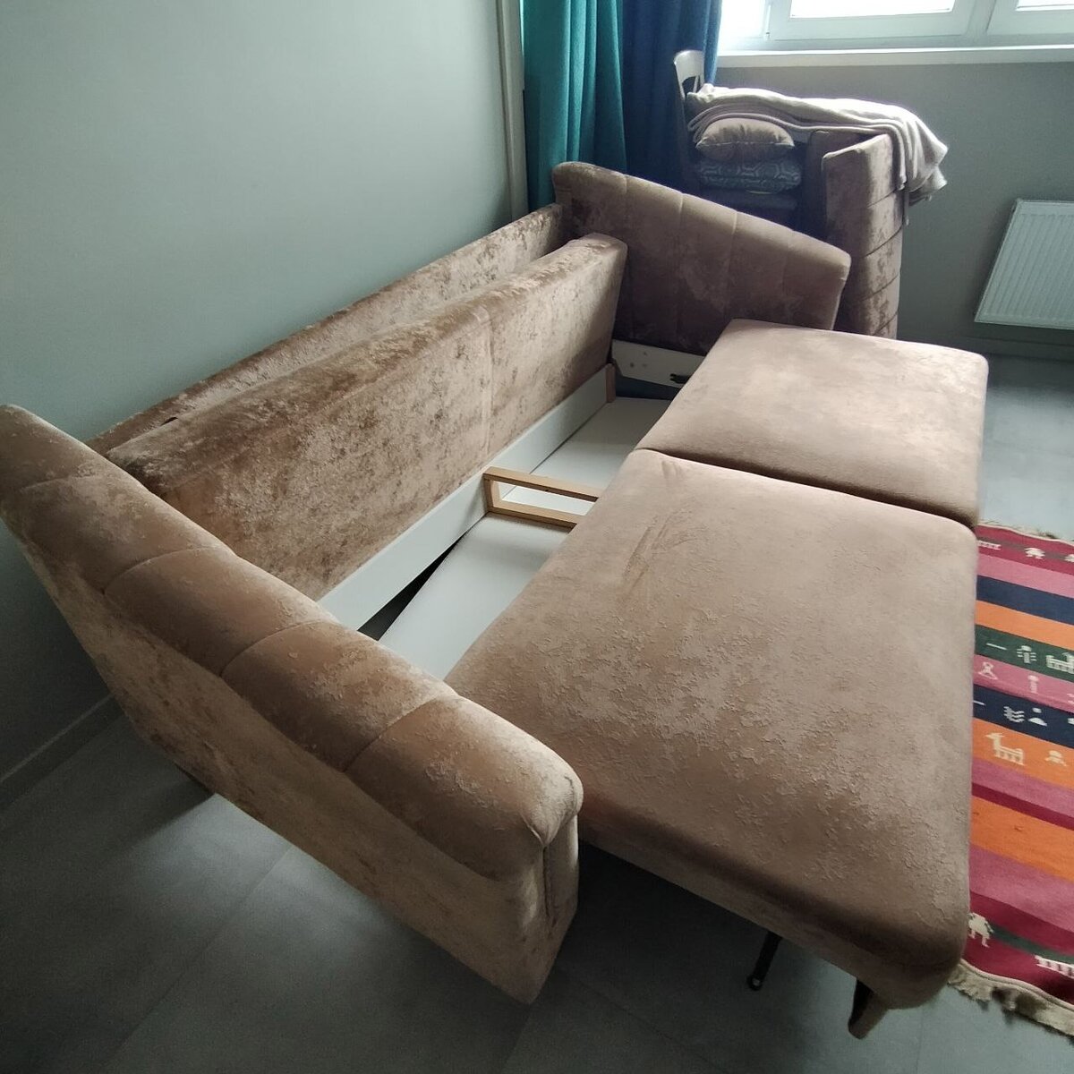 Восстановил "убитый" диван. Полностью разобрал. Отремонтировал основание дивана. Собрал диван заново.