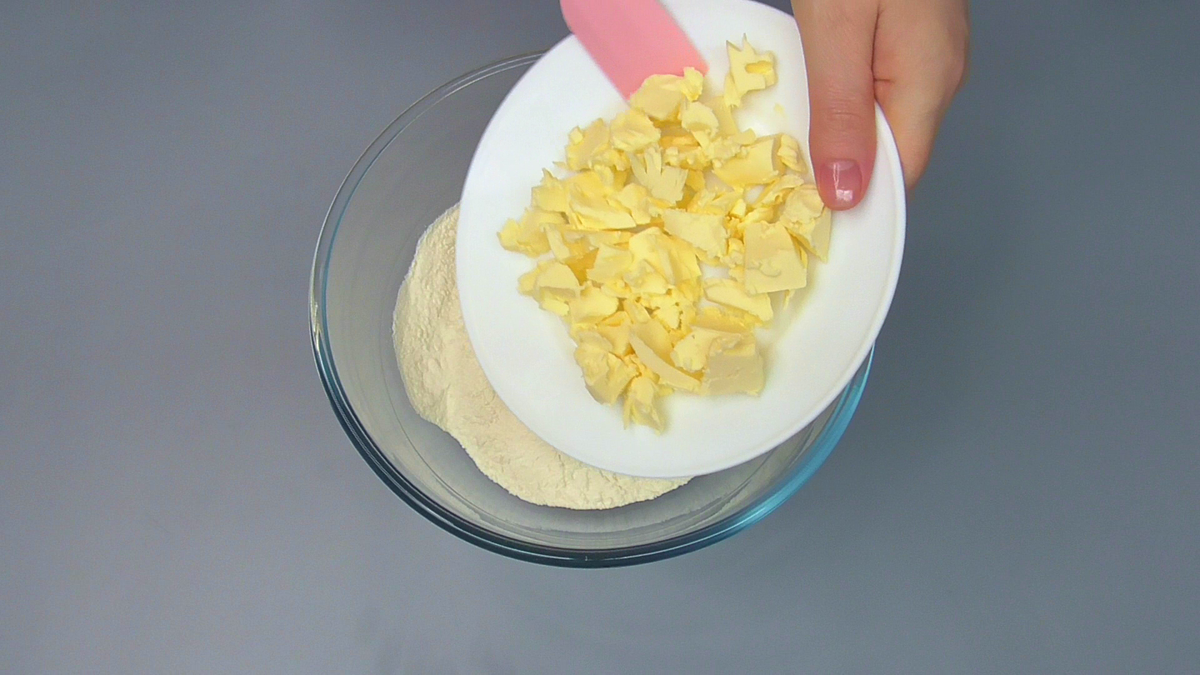 ✅Приготовление я обычно начинаю с теста. В муку добавляем подмороженное масло, его можно нарезать на кусочки или натереть на терке. Делаем крошку.