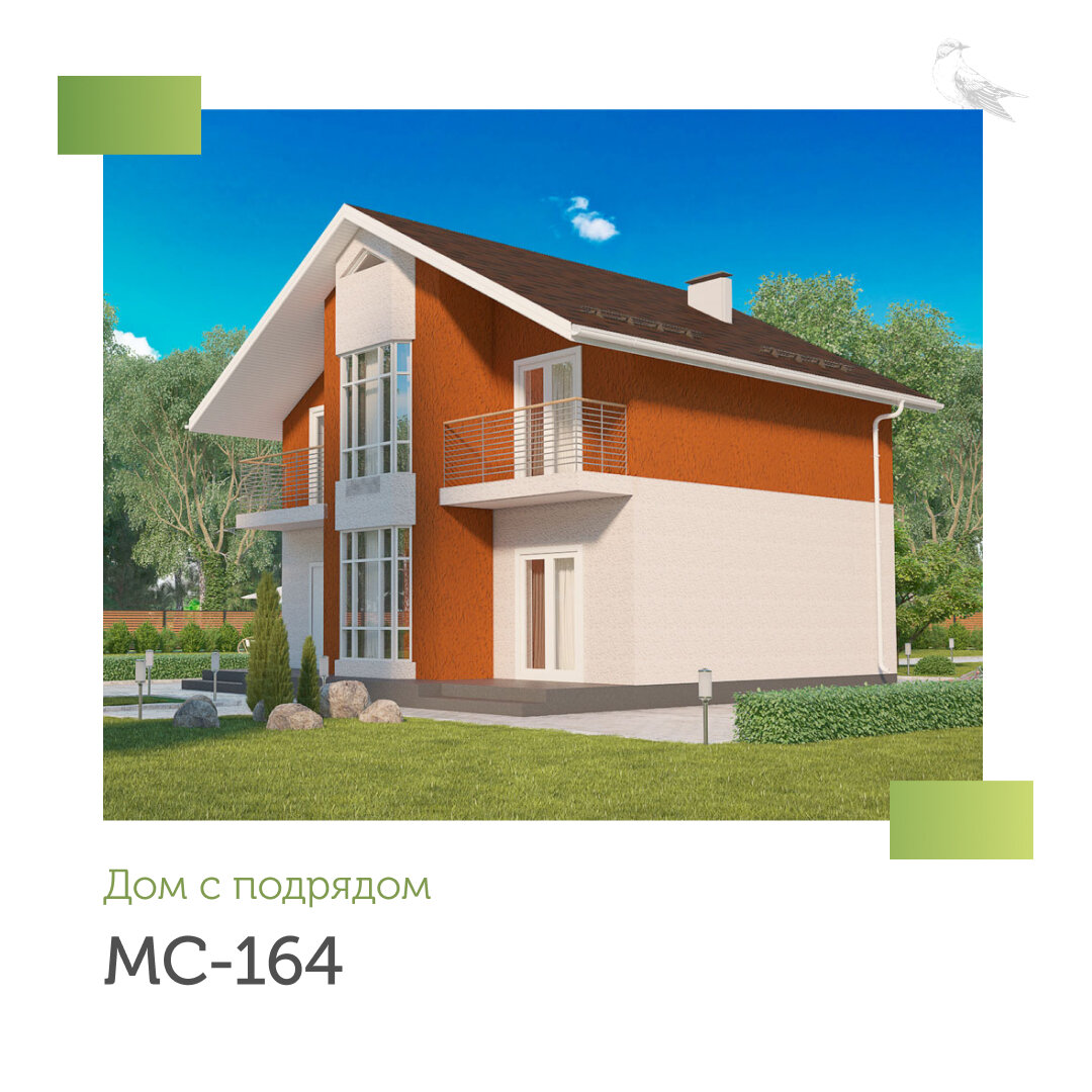Двухэтажный дом с эркером, террасой и двумя балконами – это дом по проекту МС-164.