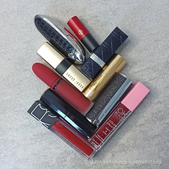 Guerlain Gold Wish Rouge G De Guerlain в оттенке Gold Red (писала о ней здесь).Gucci Rouge A Levres Satin в оттенке 500 Odalie Red (об этом позитивном алом вот здесь).Bobbi Brown Luxe Matte Lip Color в оттенке On Fire.Rouge Dior Ultra Rouge в оттенке 999.Sephora Collection Rouge Satin в оттенке S10. Givenchy Le Rouge Deep Velvet в оттенке №37 Rouge Graine (о ней вот тут).Giorgio Armani Rouge D’armani Matte в оттенке 400 Four Hundred (про нее было в другой подборке).MAC Ruby's Crew Powder Kiss Liquid Lipcolour в оттенке Ruby Boo.Nars Velvet Lip Glide в оттенке Le Palace.O.K Beauty Color Salute Matt & Stay в оттенке Dita (про нее здесь).