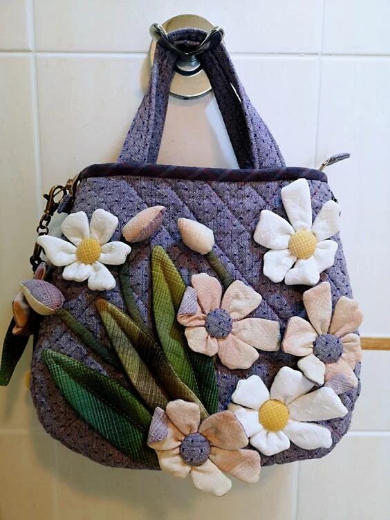 Сумки с объемной цветочной аппликацией, идеи для вдохновения.