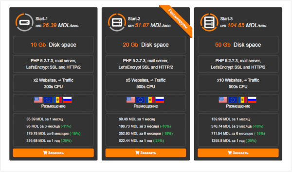 1. Определиться с хостинг-компанией, которой вы доверите обслуживать ваш сайт, выбрать понравившийся тариф (тут). Не забывайте, что в вашем случае объем дискового пространства дол