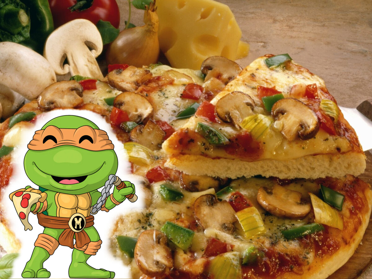 Ингредиенты: Инструкции: 1. Разогрейте духовку до 200 градусов. 2. Разверните пицца-тесто на противне и нанесите томатный соус на верхнюю сторону. 3. Посыпьте шампиньоны, красный лук, зеленый и красный перец сверху. 4. Посыпьте сыр Моцарелла сверху, орегано и чесночный порошок. 5. Поставьте пиццу в духовку и выпекайте около 15 минут, или пока корочка не станет золотистой и хрустящей. 6. Выньте пиццу из духовки и дайте ей немного остыть перед нарезанием на кусочки. Готово! Теперь у вас получилась необычная пицца в стиле Черепашек-ниндзя, которую можно подавать на вечеринке или просто наслаждаться в уютной атмосфере дома. Приятного аппетита! Понравился рецепт - подписывайтесь на наш канал, будет ещё много интересного и вкусного!!!