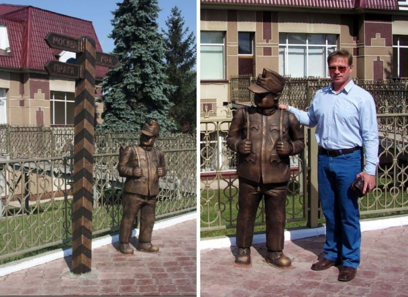 На вокзале Бугульмы имеется памятник бравому солдату Швейку, в память того, что автор его похождений, Ярослав Гашек, был в 1918 году комендантом города. Справа — автор памятника бугульминский скульптор Андрей Маер, рядом со своим произведением