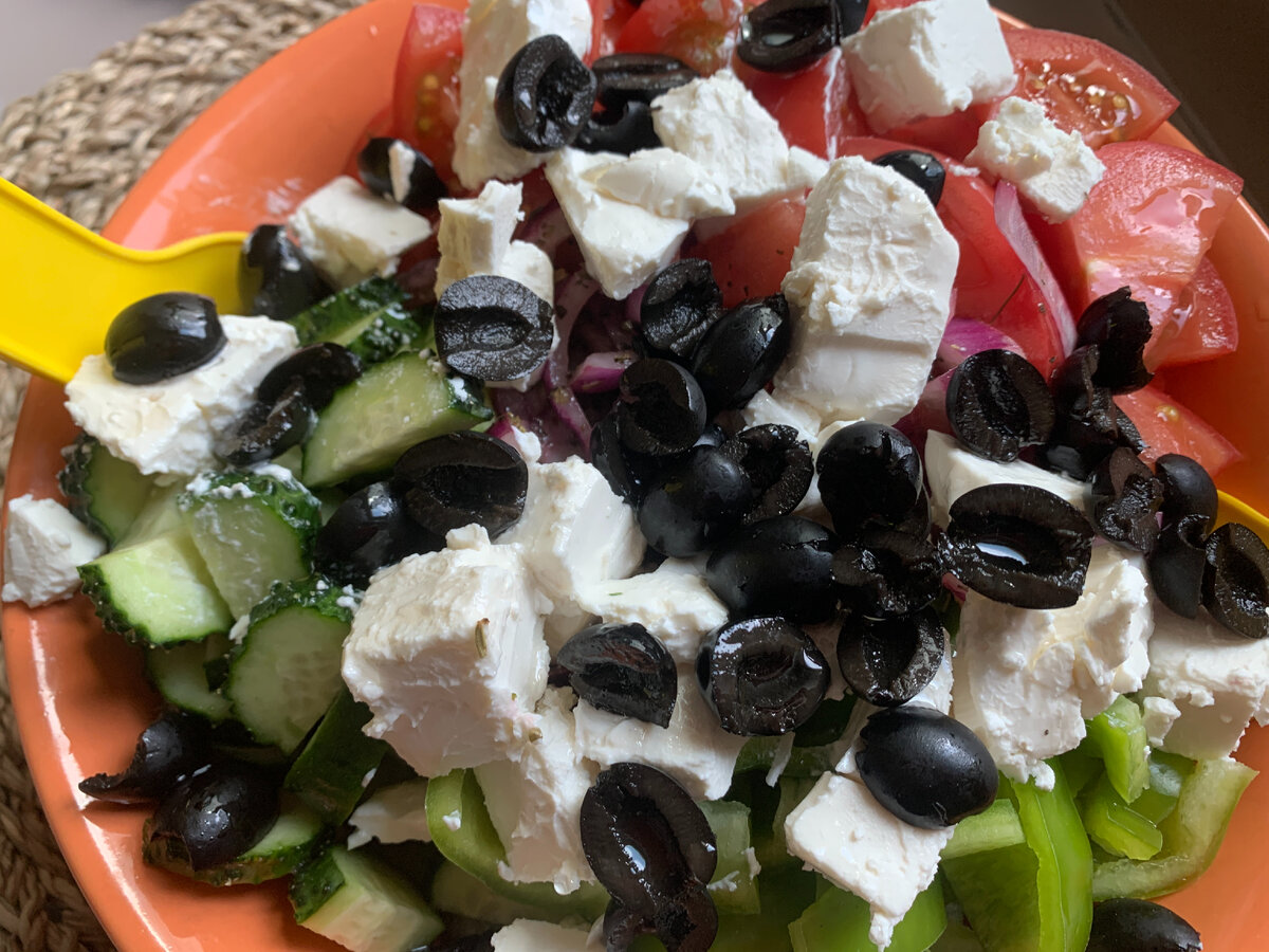 Простая классика, идеальная для жаркого дня! Основа проста и понятна - салат и овощи Соус - вторая важная часть этого салата Далее я беру салатный лук и замачиваю его в соусе минут на 5-10 После - добавляю в салат лук вместе с соусом Ну и, конечно, сыр фетакса И финальный штрих - маслины Конечно, никаких новых секретов, но лишний раз не мешает напомнить себе и другим, что есть такой чудесный салат! Приятного аппетита! Резюмируя ингредиенты: Соус: