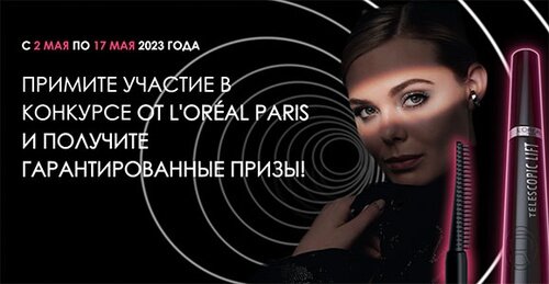 Подробнее https://reklamnyeigry.ru/2023/05/06/%d0%bf%d0%be%d0%bf%d1%80%d0%be%d0%b1%d1%83%d0%b9-%d0%bd%d0%be%d0%b2%d0%b8%d0%bd%d0%ba%d1%83-telescopic-lift-%d1%81%d0%bf%d0%b5%d1%86%d0%bf%d1%80%d0%be%d0%b5%d0%ba%d1%82-%d0%be%d1%82-loreal-p/ Чтобы принять участие в конкурсе Попробуй новинку Telescopic Lift: спецпроект от L’Oréal Paris необходимо с 02 по 17 мая 2023 года: 1. Купить новую тушь Telescopic lift на одном из маркетплейсов 2. Оставите отзыв с фото и вашими впечатлениями от туши на маркетплейсе; 3. Загрузите скриншот отзыва на странице акции; 4. Будьте в первой 1000 участников и получите гарантированные призы! Призовой фонд: 2 продукта из актуального каталога макияжа L’Oreal Paris – 1000 шт.