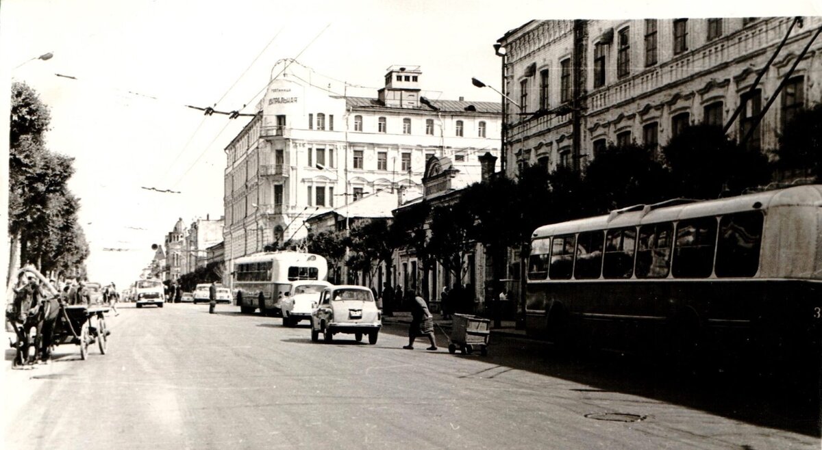 Интернет-журнал Другой город на днях опубликовал ряд исторических фото Самары, датируемых 1960-1970-ми гг. Фото предоставлены Еленой Машковой. Взглянем на транспорт того времени. 1. Улица Ленинградская - одна из главных и оживлённых улиц того времени. Как видим, кроме автотранспорта, в ходу был и гужевой транспорт. РАФик на дальнем плане вероятно маршрутное такси. Ну и троллейбусы, в данном случае - ЗИУ-5. Сейчас в это трудно поверить, но ещё до 2000-х годов были маршруты чисто по центру города, которые пустые не ходили. 2. Комсомольская площадь и вид на железнодорожный вокзал. Сейчас это место изменилось кардинально: нет старого вокзала, площадь превращена в парковку. А в то время простора было больше. Троллейбусы ещё ходят через площадь и по Спортивной улице в оба направления. Сейчас уже давно тут одностороннее движение. Одинокий ЛАЗ на площади. А на фоне троллейбуса справа стоит знак обозначения остановки. Часто он был выполнен из колёсного диска от грузового автомобиля, как основан