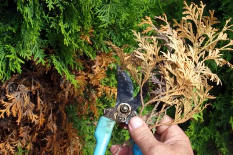 Ветки туи могут желтеть по естественным причинам, например, из-за смены отмершей хвои на новую. В остальных случаях важно понять, почему желтеют ветки туи. Проблема может быть в почве, туи не выносят тяжелого грунта. Возможно, при посадке была слишком сильно заглублена корневая шейка, из-за этого она начинает гнить. Пожелтение может быть следствием слишком частой посадки туй, поскольку загустение повышает риск развития болезней. К таком эффекту приводят нарушения правил ухода: недостаток или переизбыток влаги, отсутствие подкормок или неправильное внесение удобрений. Ранее мы рассказывали о том, что: