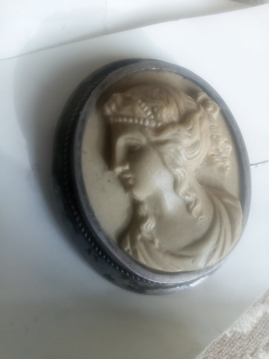 Лава. Брошь. Сталь. Предположительно Германия Первой Мировой Войны. Позже не делали такие страшно торчащие булавки: их либо стали делать короче, либо вообще закрывать кончик. А тут - длинная, острая, стальная... Пораниться - легко и просто. Вторая (и главная) причина, по которой я склонен атрибутировать на время ПМВ, это именно то что оправа - сталь. Я предполагаю, что камея 19 века и была оправлена в золото. Но в патриотическом угаре некая немка отнесла брошь в переделку, и оправила в железо, а золото сдала на нужды армии. Но, глупых немцев это не спасло, как известно. Как известно, им и из Украины пришлось сматывать удочки.