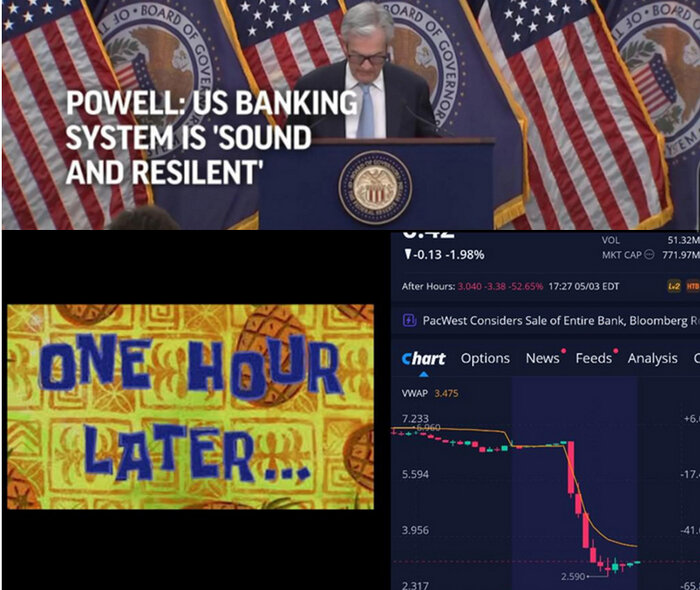 Самое забавное в том, что это случилось спустя пару часов после заявления председателя ФРС - Джером Пауэлла о том, что:Банковская система США остается сильной и устойчивой. ".