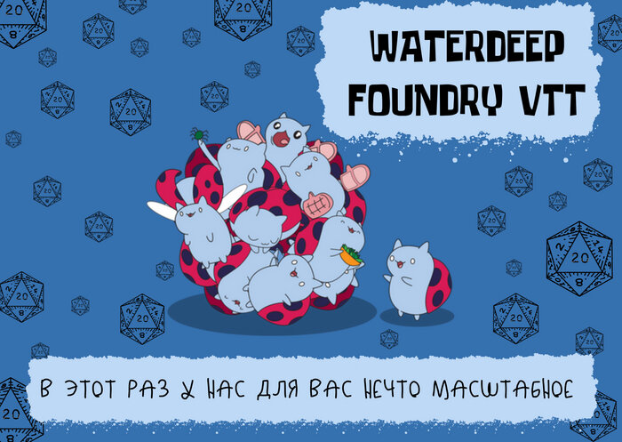 Всем привет, сегодня на повестке дня моя самая большая работа, которой я хочу с вами поделиться. А еще я ей очень горжусь.:) Если вы вдруг не знаете, что такое D&D или что это за Foundry, советую заглянуть и пробежаться по вот этой статье. “Вотердип: драконий куш”, “Глубоководье: ограбить дракона”, как только не называют эту кампанию. Оригинальное название - “Waterdeep: Dragon Heist”. Приключение для игроков 1-5 уровня (или выше). Мне и моим ребятам она запала в душу настолько, что теперь приходится адаптировать непройденное под побочные квесты, но об этом позже. Далее идет спойлер, так что если вы игрок, просто отправьте эту статью своему гейм-мастеру и уговаривайте его провести вам эту кампанию, ибо она прекрасна! Знаменитому путешественнику Волотампу Геддарму понадобилась помощь ваших героев в одном небольшом дельце. Согласившись, они оказываются втянуты в безумную погоню за сокровищами по всему Глубоководью и раскроют злодейский заговор, в котором замешаны самые влиятельные жители