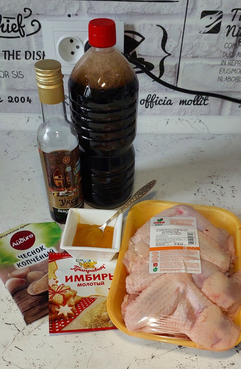 Куриные крылья одно из самых простых и бюджетных блюд на все случаи жизни. Для рецепта нам понадобится : Куриные крылья 1,5 кг. Мед 2 ч.л. Соевый соус 3-4 ст.л. Бальзамический уксус 1 ч.л. Имбирь сушеный 1 ч.л. Чеснок сушеный 1 ч.л. Крылья промываем и разделяем по суставам на две части. (У меня крылья без третий фаланги, если она есть, то её не используем). Крылья складываем в миску. Для маринада смешиваем соевый, бальзамический, мед, имбирь и чеснок. Все перемешиваем. Заливаем крылья получившийся маринадом, хорошо перемешиваем и оставляем мариноваться минимум на два часа, а в идеале на ночь. Замаринованные крылья выкладываем на противень устеленный фольгой и заливаем маринадом. По желанию, крылья можно посыпать кунжутом. Убираем в разогретую до 180 градусов духовку примерно на 30 минут. Я готовила 20 минут в режиме "верх/низ" а на оставшиеся 10 мин добавила конвекцию. Вот такие аппетитные Крылышки у меня получились. Всем приятного аппетита и спасибо, что остаётесь со мной на канале.