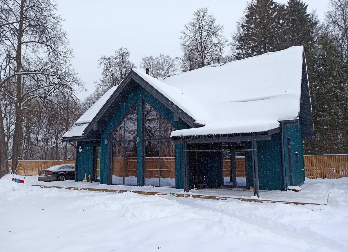 Проект «Красная Пахра» площадью 220 м2 выполнен в сине-зеленом цвете, но также есть варианты в белом и красном цвете. Двухэтажный дом вмещает в себя 4 спальни, 2 санузла и 1 сауну. В базовую комплектацию «тёплый контур» без отделки включены силовой каркас стен, перегородки и стропильная система. Дом выполнен из сухой строганой калиброванной доски с противопожарной фаской класса C24. Фундамент состоит из утепленной шведской плиты (УШП), затертой “вертолетом” и готовой к укладке чистового напольного покрытия – керамической плитки, ламината или паркетной доски; 200 мм ППС Технониколь Carbon Swedenplatte или KNAUF. Установлены 50 мм утепленная отмостка и ливнеприёмные решетки UPONOR. Кровля дома 200 мм PAROC, для которой выбрана фальц-защелка RAUMA Nordic 0,5 мм, долго сохраняет тепло благодаря ПИР панелям толщиной 30 мм и МДВП 25 мм, а также внешним стенам PAROC 200 мм с ПИР панелями 30 мм и МДВП 25 мм. Защита от непогоды обеспечена благодаря водосточной системе от AQUASYSTEM, снегозадер