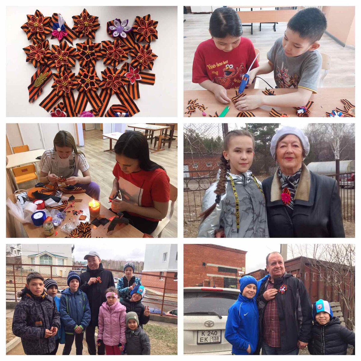 Ребята узнали историю появления ленточки, значение этого символа, познакомились с правилами ее ношения, раскрыли значения цветов на ленте: чёрный – обозначает порох, а оранжевый – огонь. На кружках «Бисеринка», «Умелые ручки», а также с воспитателями семейных групп ребята своими руками изготовили из ленты броши и памятный символ в стиле «канзаши». После этого ребята Отряда министра «Horizont» раздали гражданам района Юбилейный и сотрудникам нашего учреждения изготовленные собственноручно знаки черно-оранжевого цвета в память о подвиге дедов и прадедов, сокрушивших нацистов в годы Великой Отечественной Войны. Акция «Георгиевская ленточка» становится хорошей традицией, эстафетой готовности защитить свою землю, свой народ, свое имя, общей данью памяти и уважения к ветеранам. Мы помним о нашей истории, мы гордимся героями прошлого и настоящего, мы поддерживаем лучшие традиции народов России!