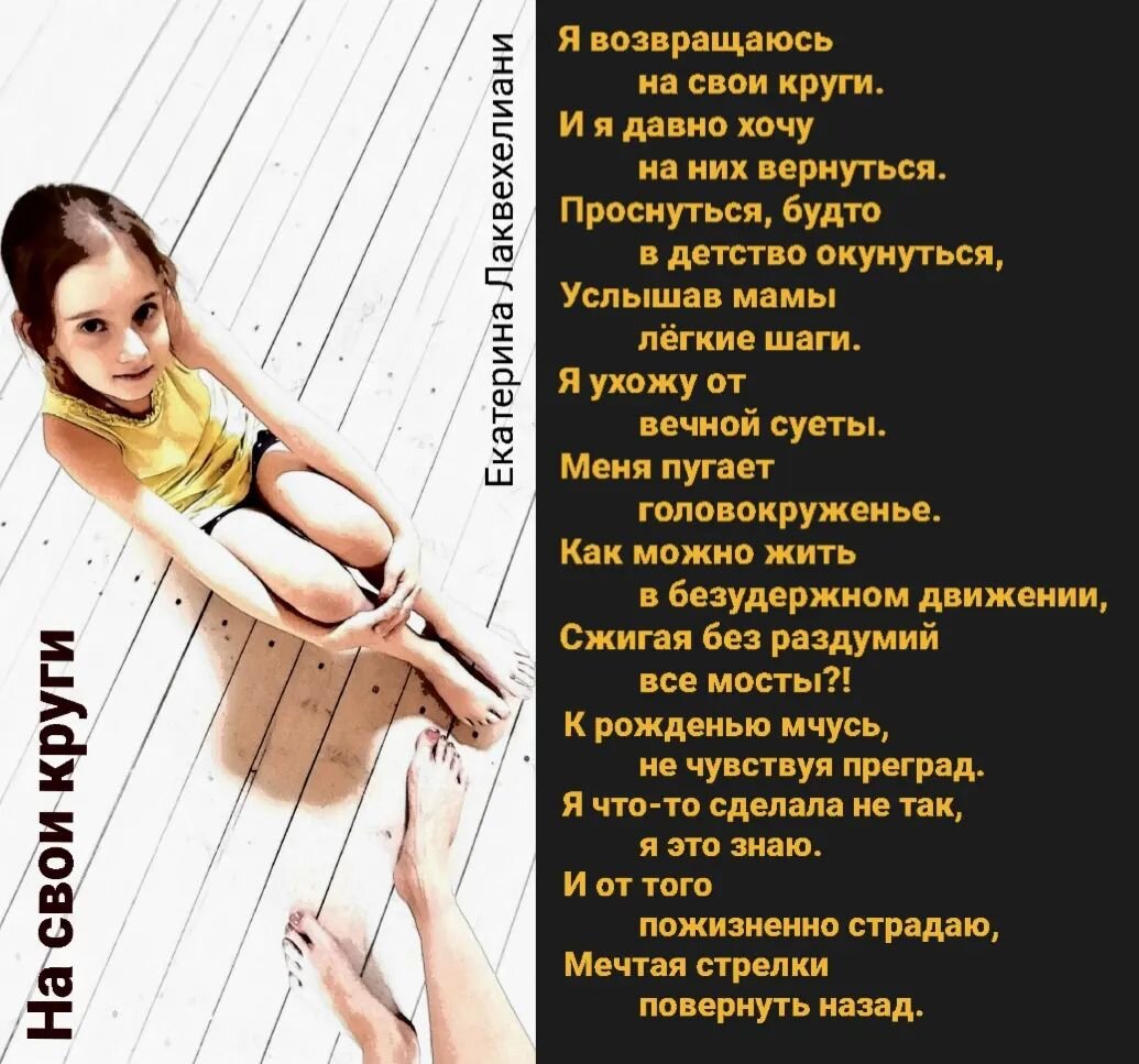 С каждым прожитым годом начинаешь понимать больше. И некоторые моменты прошлого становятся более ценными! Моя страничка на Литрес. Читайте мои книги Моя группа ВКонтакте. Заходите, читайте Больше моих стихов по ссылке https://stihi.ru/avtor/stkatrina © Copyright: Екатерина Лаквехелиани, 2023 Свидетельство о публикации №123021505908