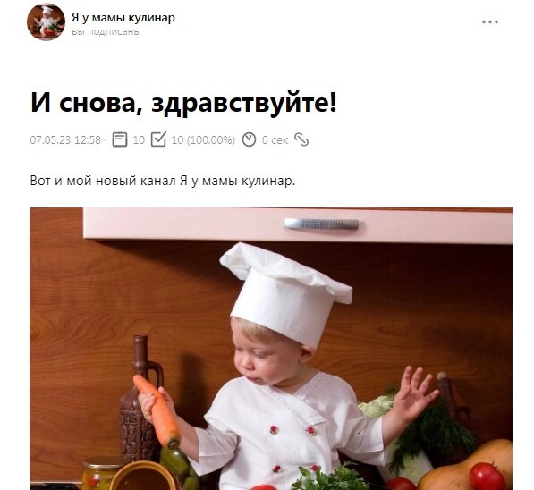 Всё чаще, в последние дни, каналы друзей попадают в немилость и бан. Не всегда обращение в ТП приводит к восстановлению показов иногда приходится начинать всё с нуля, включая набор друзей. И становится уже традицией, грустной, мои призыв, давайте поможем другу. Канал "Я у мамы кулинар" Под этим именем мы его и знали, входил он в список Р+. Был забанен за заимствованный контент и даже удаление всех публикаций и написание новых чисто авторских не спасло. По итогу новый канал, и новый путь даже до монетизации. Поможем друзья. Ссылка на канал: Спасибо что дочитали до конца Удачи!!! И да минуют вас баны и предупреждения.