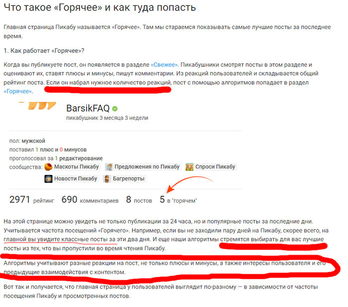 В очередной раз сюрприз от команды Пикабу. В горячем начали появляться посты с минусовым рейтингом. Причем не 10-20, а в сотнях. И списать на задержку в обновлении статистики не приходится. Вопрос вот в чем: зачем этот рейтинг вообще нужен, если подсовывается явный шлак, который заминусовали? Читаем ваши же правила. Заметьте, сколько обтекаемых слов и словоблудия: реакции, стремятся, классные посты, воздействия с контентом и т.п. С каких щей ваши алгоритмы знают, что минусовой пост - классный для меня? Прямо сейчас вижу: Я конечно понимаю, что на вкус и цвет - фломастеры разные. Но это пример классного поста? Причем для меня? Весь смысл поста, который хочет привлечь к себе в телеграмм-канал? И пост который заминусовали? Далее. Идем в настрой профиля и видим: Как такое? Ну если вы решили подсовывать ниже -15, то тогда и дайте механизм отсечения их, а я уже соображу нужны мне такие посты или нет. Вообще зачем нужны тогда настройки? Как обычно получилось - правая рука не знает, что делать