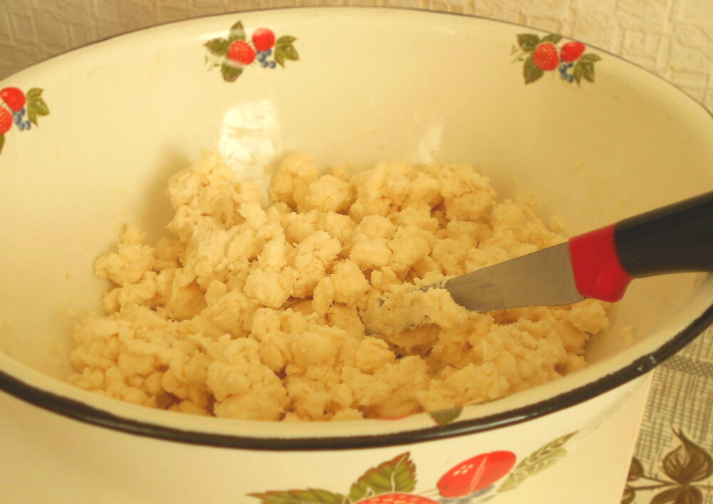 Ещё недавно я скептически относилась к идеям приготовления тортов на сковороде. Но, впервые попробовав, убедилась, что такой способ тоже имеет право на существование :) У него даже есть некоторые преимущества. Во-первых, можно сэкономить время. А во-вторых, приготовление тортика на сковородке — хорошее решение для знойного лета, когда совсем не хочется включать духовку. На днях я испекла на сковородке торт «Наполеон». Приготовление было несложным, а результат очень вкусным, поэтому я охотно поделюсь своим опытом :) Начну со списка всех необходимых ингредиентов. Для теста: Для заварного крема: Имея всё под рукой, можно приступать к приготовлению: 1. В миску выложить маргарин. Разрезать на несколько равных кусочков, пересыпать мукой и порубить ножом. 2. Собрать маргаринно-мучную массу горкой и сделать небольшое углубление в центре. 3. В глубокой пиале или миске взбить яйцо вместе со сметаной, сахаром и солью. 4. Полученную смесь вылить к маргарину с мукой. 5. Замесить тесто. Сначала