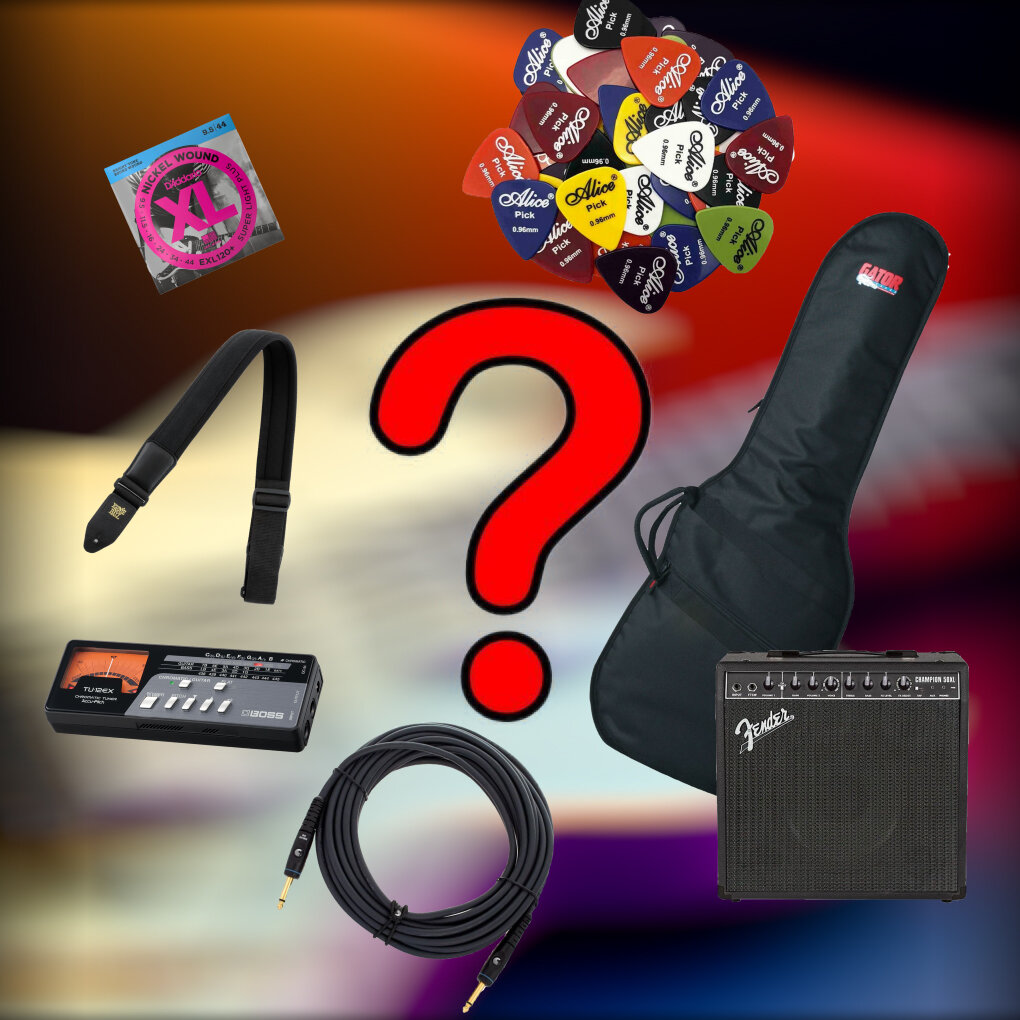 Предположим, что вы уже стали счастливым обладателем электрогитары, но это только начало. Кроме самой гитары, вам понадобится дополнительное оборудование и аксессуары. Для чего вообще нужно это оборудование и аксессуары? Дополнительное оборудование и аксессуары вам помогут осваивать игру на гитаре с комфортом. Они помогут выстроить звук для вашей гитары, так же вы сможете выбрать множество разных музыкальных эффектов и быстрее начнете разбираться в настройке звука для себя. Что нужно приобрести к электрогитаре в первую очередь, после ее покупки: • Комплект качественных струн. Например это могут быть: D’Addario, Ernie Ball Slinky, GHS Boomers, Fender Pure Nickel, Elixir Optiwed.