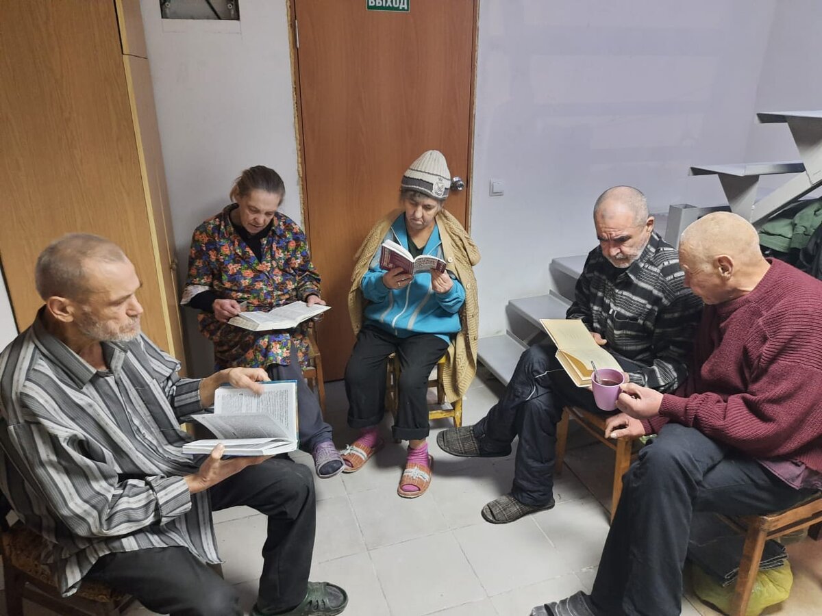Для бездомных в шелтере периодически проводят сеансы психологической помощи. На один из них попали и мы. Нас встретили уже как родных, принесли стулья: