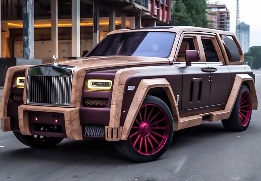 Представьте, что американский стиль Woody снова вошёл в моду, только не в США, а в Европе. И что самые знаменитые тюнинг-ателье начали делать свои обвесы не из модного сейчас карбона, а из натурального дерева. Совершенно очевидно, что вероятность такого события близка к нулю, но нам всё же захотелось представить, каким был бы внедорожник Rolls-Royce, доработанный тюнером Mansory в стиле Woody. Почему именно Mansory? Ответ прост: на подобную дикость в наше время способны только они. Хотя глядя на эти изображения, которые мы сгенерировали при помощи нейросети Midjourney, нам кажется, что это слишком даже для этого тюнера. Вот что у нас получилось. На изображении в самом начале статьи, а также на том, что идёт после этого абзаца, вы видите дорожные варианты внедорожника с большими колёсами и низкопрофильной резиной. Но если в первом случае тюнинг ограничивается деревянным обвесом, то во втором кажется, что вся центральная часть кузова изготовлена из древесины. Следующие два варианта сдела