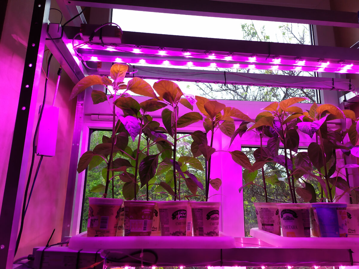 Огурцы перебрались в теплицу. Помидоры вместо затеняющей сетки пришлось срочно накрывать двумя слоями спанбонда и только перцы радостно жрут фотоны производимые в изобилии китайскими светодиодами на моём окне. А за окном +10 днём, +8 ночью. После стабильных +17 и до 24 днём. Переросли слегка. Хоть с горшком меряй, хоть без. И ещё особенность "своих" семян - с одного плода собраны , а по высоте чуть не на четверть между самым долговязым и самым низким. Ждём тепла. Если синоптики не врут, через неделю можно будет высаживать. Ага... под шпалеру, чтобы ветром не поваляло... По даче монстры расплодились. Как бы поликарбонат на теплице не пожрали. Тревожно! Если кто знает что за хрень такая загадочная подскажите. Бихроматические светодиоды из разных партий светят с разными оттенками. Что не удивительно в принципе. А вот вызвано это выгоранием люминофора или его разным составом остаётся загадкой. Для себя сделал вывод : первые критические для формирования 2-3 недели надо держать под монохр