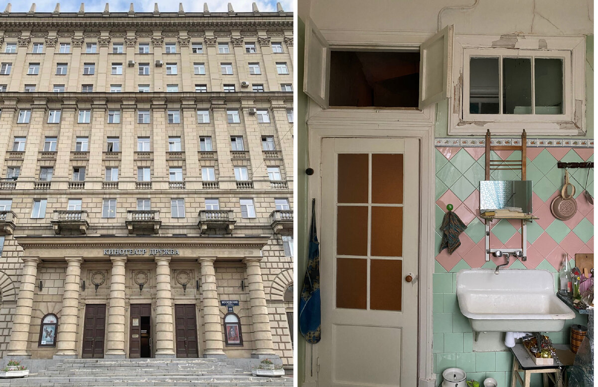 Жилой дом с кинотеатром «Дружба» по проекту М.Н. Русакова и В.М. Фромзеля — первый 10-этажный дом, удостоившийся премии за лучшее здание (из возведенных в 1953 году) на Всероссийском конкурсе 1954 года. Это здание, бесспорно, связало несколько раздробленную довоенную застройку проспекта на данном участке. <...> Однако принятая коридорная система планировки, частично обусловленная тем, что в габаритах нижних этажей запроектирован кинотеатр, вызывает бытовые неудобства для жильцов. — писали во втором номере журнала «Архитектура и строительство Ленинграда» за 1954 год Бытовое неудобство жильцов вполне очевидно. На 138 квартир здесь всего две парадные по обе стороны от входа в кинотеатр, по два лифта в каждой (запроектировано было вообще 2 лифта на дом). При этом нужно учесть, что в основном квартиры здесь в 1 или 2 комнаты (4ккв – 7, а 3ккв – 9). То есть количество жильцов больше, чем если бы многокомнатные квартиры преобладали. При этом уже в одиннадцатом номере того же журнала за