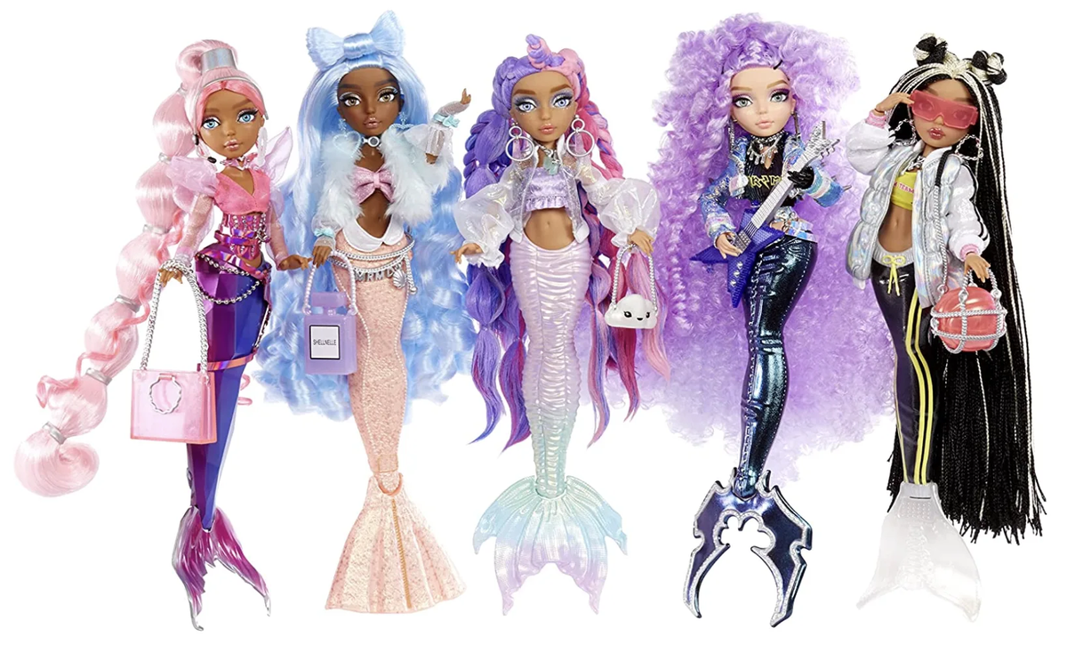 Куклы Mermaze Mermaidz выпускаются компанией MGA, которая является одним из самых крупных производителей игрушек в мире. Они выпустили Bratz, Rainbow High, LOL Surprise и др. Коллекция Mermaze Mermaidz была выпущена в 2022 году и сразу же стала популярной среди детей и коллекционеров. Каждая кукла Mermaze Mermaidz представляет собой русалку. Рост каждой куклы - 34 см + они шарнирные. Сейчас расскажу про основной состав: Кишико Имеет японское происхождение. Стиль этой русалочки вдохновлен харадзюку. Она любит блистать. Из интересного у куклы меняется цвет хвоста при прикосновении с холодной водой. С пастельно-розового на яркий-розовый перламутровый. Шелнелл Является отсылкой к Шанель (даже сумочка схожа с флаконом от их духов). Она не гонится за трендами, но создает их сама. В контакте с холодной водой ее хвост меняется с розового на голубой. Ривьера Русалка бунтарка, рок-звезда. Ее хвост стилизован под электрогитару. В комплекте вместе с ней идет гитара (вместо сумки). В теплой во