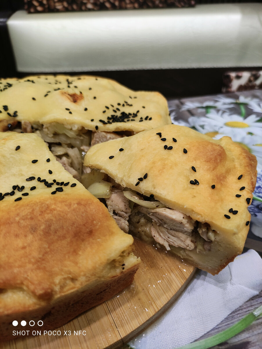Сочный, идеальное вкусное тесто, много мяса. Два кусочка съела - остановиться не могла.