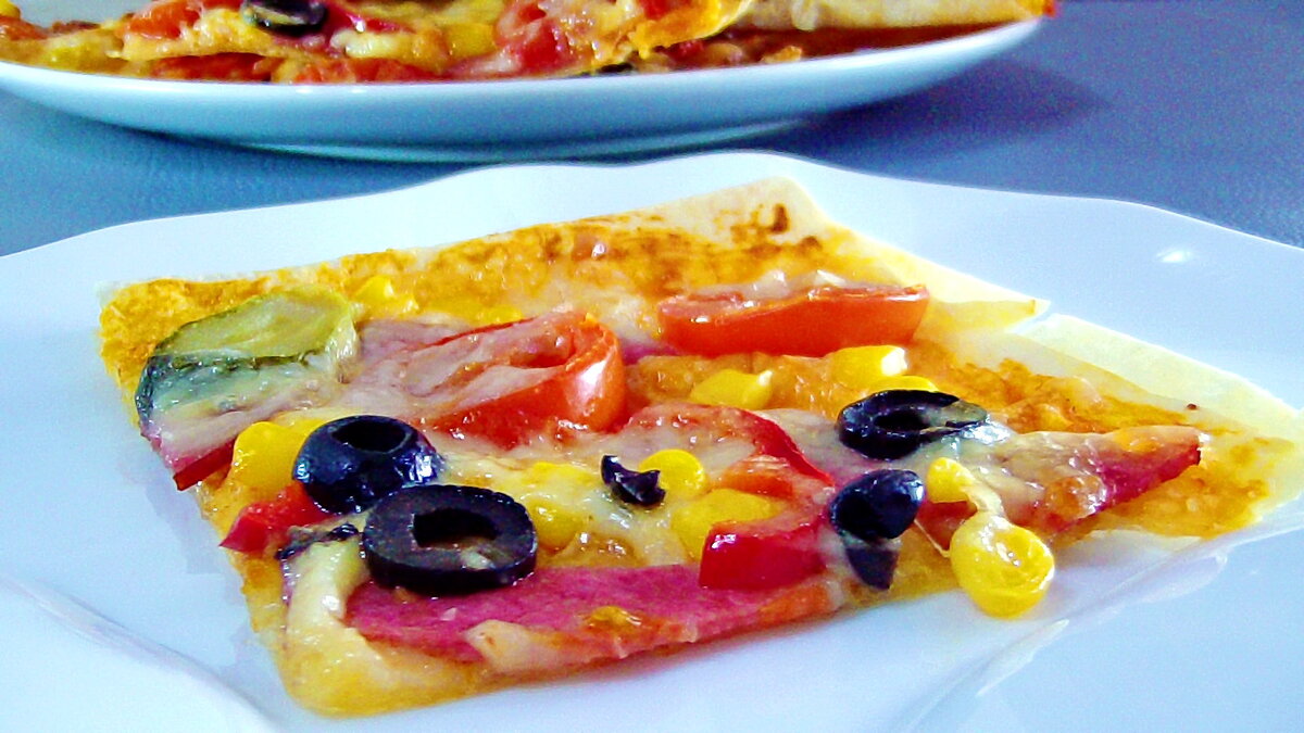По субботам и воскресеньям, у нас в семье позволено съесть немного "вреднюшек". Либо хот-доги, либо пиццу, либо бургеры. Но все это мы не покупаем, а готовим сами. Но иногда приходит тетушка Лень и не хочется возиться с тестом. В таких случаях мы готовим пиццу на лаваше. Рецепт из разряда "проще некуда". Пока девочки на работе, мы с моим помощником готовим к их приходу пиццу. Присоединяйтесь к нам и будем готовить вместе. ВИДЕО РЕЦЕПТ: ПОШАГОВЫЙ РЕЦЕПТ С ФОТО: Использую тонкий армянский лаваш. Выкладываю его на противень, чтоб края свисали. СТАСяныч посыпает середину сыром и накрывает свисавшими краями. Я в это время нарезаю все ингредиенты и тру сыр на терке. Стас готовит соус из кетчупа и сметаны. Смазывает лаваш соусом и выкладывает поверх него колбасу, помидоры, маслины, перец, кукурузу и соленые огурцы. Посыпает всю поверхность оставшимся сыром. Я отправляю противни в разогретую до 180°С духовку на 15 минут. Готовую пиццу нарезаю на порционные кусочки. Пробу снимает Стас. Еще боль