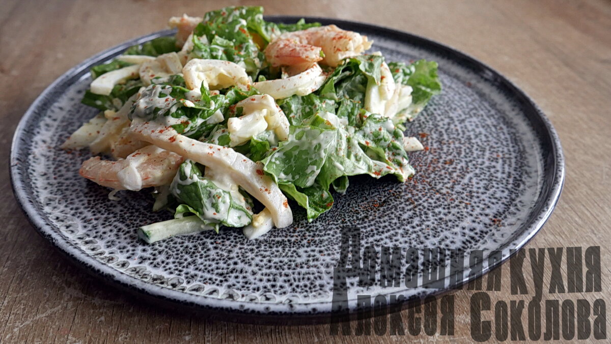 Весенний салат с морепродуктами. Домашняя кухня Елены Соколовой