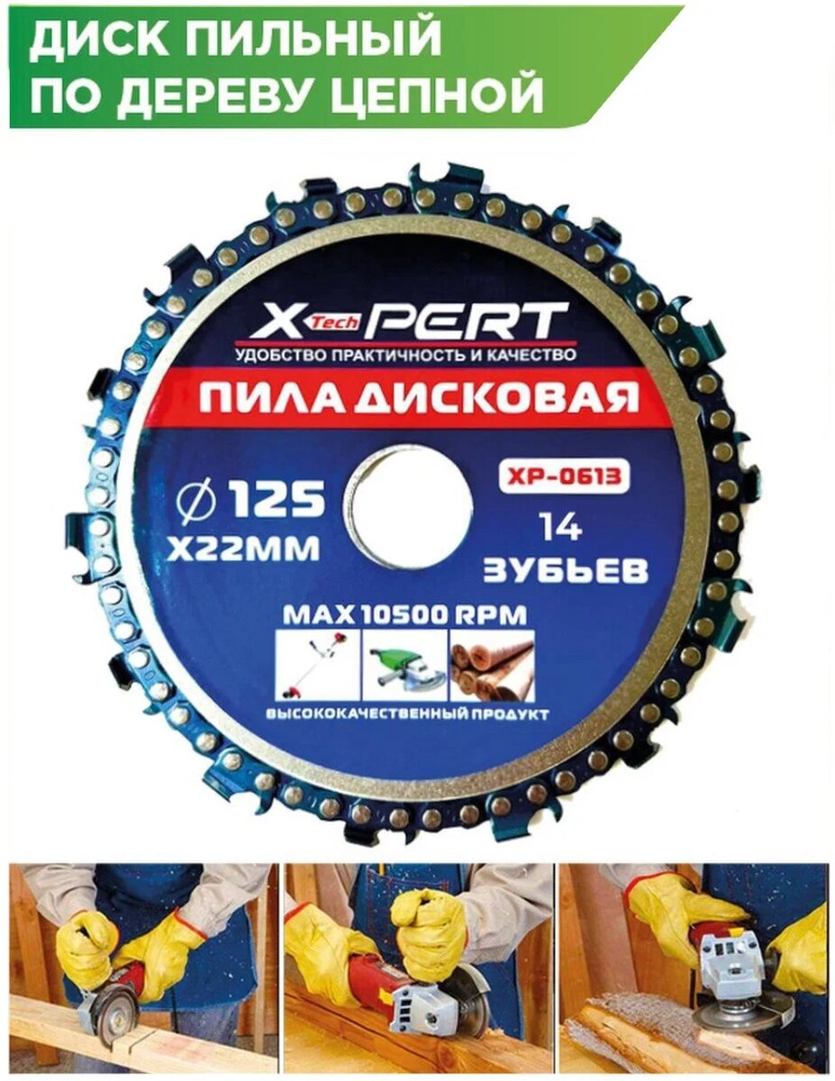 Описание Цепной диск для болгарки / Диск цепной - это уникальный расходный инструмент для угловой шлифмашинки (болгарки), оснащенный растянутой по окружности пильной цепью. Цепной диск предназначен для резки и обработки древесины и древесных материалов, фрезерования, моделирования, зачистки дерева от коры и вырубания чашек в бревне для срубов. Цепной диск для болгарки подходит для очень высокой скорости обработки, которую развивает угловая шлифмашинка. Характеристики Количество в упаковке 1 шт. Тип по дереву Диаметр диска 125 мм Толщина 0.23 мм Посадочный диаметр 22 мм Материал обработки дерево Максимальное количество оборотов 12000 об/мин Тип алмазного диска сплошной Сухая резка есть