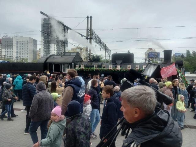 Сегодня, 8 мая 2023 года, в 11.00, на станцию «Волгоград-1» прибыл ретропоезд. Проект «Воинский эшелон» от Приволжской железной дороги охватит несколько городов Волгоградской области. Одними из первых паровоз с техникой времен Великой Отечественной войны встречали жители города Суровикино, а также Чернышковского, Котельниковского районов. В канун Дня Победы состав добрался до региональной столицы, где пробудет больше суток – сегодня и завтра, 9 мая 2023 года. «Воинский эшелон» с 2018 года каждый победный май курсирует по трем областям – Саратовской, Волгоградской, Астраханской. - Нас хотят видеть и на других дорогах, потому что это пока единственный такой проект, нодумаю, что будем отправляться и в другие регионы: проблем с дозаправкой углем и водой уже нет, - отметил старший машинист ретросостава Владимир Протасов, который водит паровоз пятый год. На платформах размещена не только вооружение времен Великой Отечественной войны: организаторы проекта собрали картины далеко не легкого быт