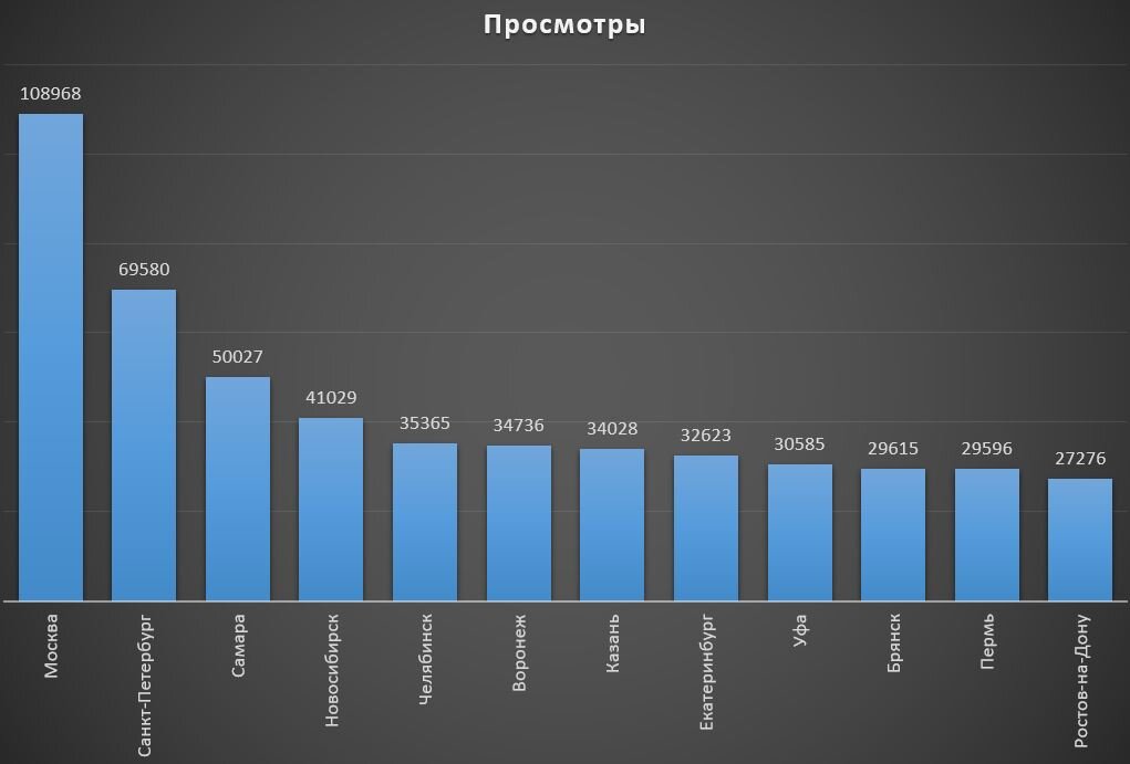Обзор сайта https://afisha7.ru на 8 мая 2023 года. ТОП-12 городов. ТОП-12 городов по количеству просмотров событий сайта https://afisha7.ru выглядит следующим образом: На этой неделе из ТОП-12 выбыл Иркутск, который заменил Ростов-на-Дону. Дальневосточный регион отметился 38 местом у Хабаровска, 46 местом у Владивостока и 61 местом у Южно-Сахалинска. Брянск замыкает десятку по количеству просмотров событий сайта. Эта неделя продолжила снижение прироста, количество просмотров снизилось в два раза. Все актуальные события Брянска публикуются в официальной группе ВКонтакте «Афиша Брянска». Севастополь остался на 47 месте. Снижение просмотров составило почти 55%. Все актуальные события Севастополя публикуются в официальной группе ВКонтакте «Афиша Севастополя». Стерлитамак – спустился с 54 места на 55. Снижение просмотров составило более 60%. Такое снижение прироста количества просмотров мы связываем с недавней массированной DDoS-атакой (см. пост на Дзене по горячим следам «Afisha7»). Катего