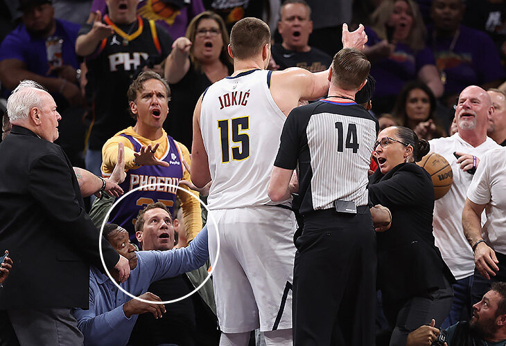 На ход игры этот момент не слишком повлиял, хоть «Финикс» и приобрел благодаря актерскому мастерству своего нового босса одно очко. Правда, теперь Йокичу может грозить дисквалификация. Согласно правилам лиги, игроков, которые «оказываются на трибунах», должны отстранять, вот только очень пристрастный наблюдатель может сказать, что серб «оказался на трибунах», он отошел от площадки всего-то на полметра и никуда не поднимался.
