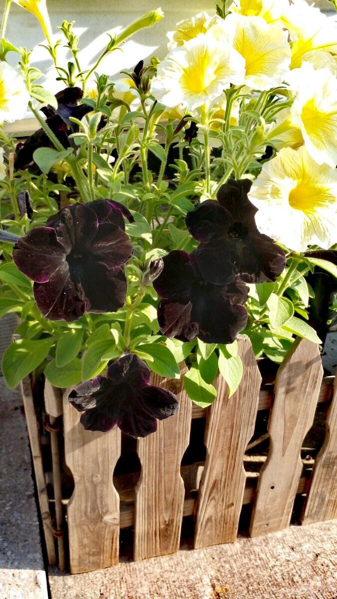 Всем привет. Обожаю цветы в чёрном цвете. Всё сегодня расскажу про петунью. Его вывели в 2011 г. - "Черный бархат". До появления этой петуньи Black Velvet действительно черного цвета не существовало. Все введённые цветы, которые назывались черными, на самом деле имели темно-фиолетовый цвет. Это растение очень хорошо ветвиться. Средняя высота черных петуний составляет 20-30 см. Сорт Black Velvet раннецветущий, то есть петунии зацветают уже в конце весны. Цветут чёрные петуньи все лето и осень. Выдерживает температуру до 0 градусов. Петунии этого сорта неприхотливы. Любит солнечные места, умеренный. Петуния Черный бархат (Black Velvet) размножается только черенками. Я ссобирала с чёрной петуньи семена и они родились все что угодно только не чёрные. Были разноцветные. Обожаю их.