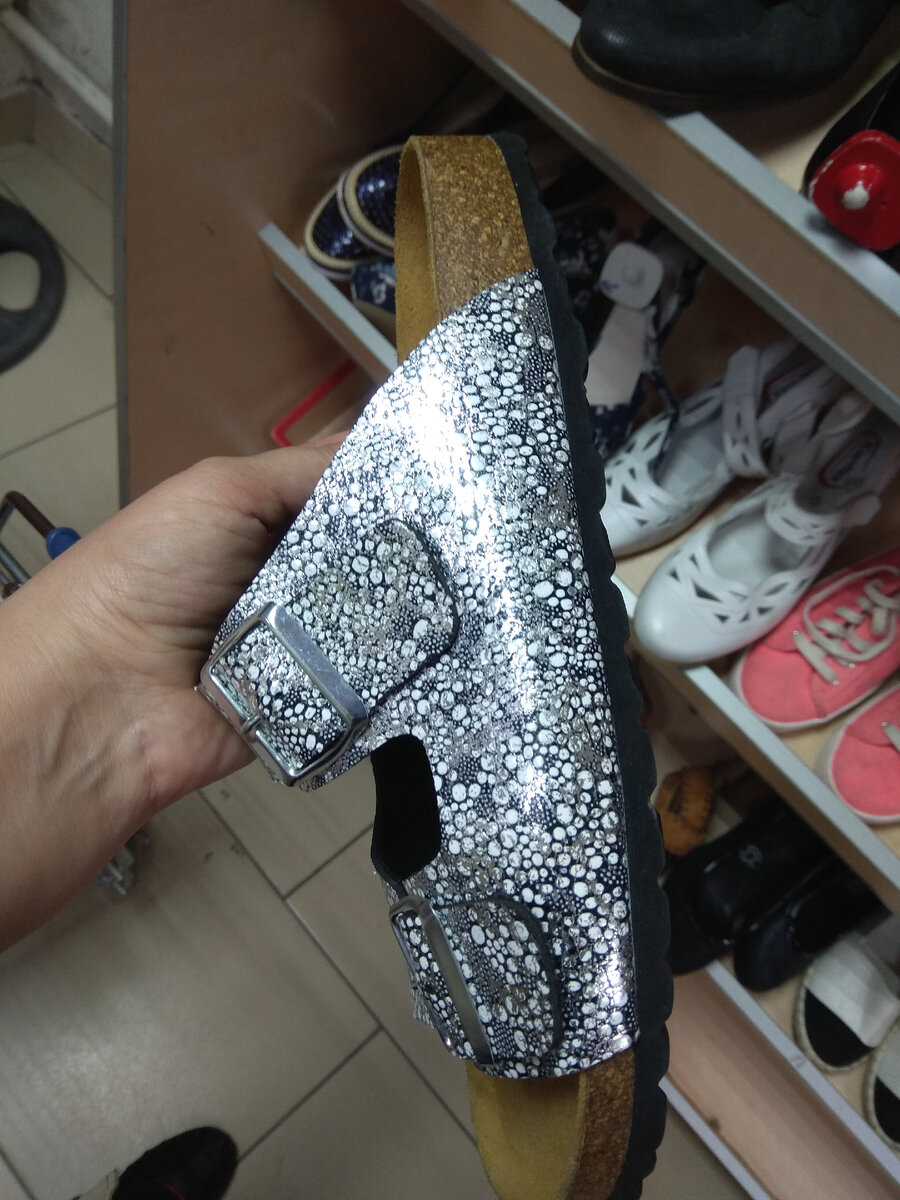 Всем — здравствуйте! С секондом "Во!Ва!" у меня не заладилось с первого посещения. Непонятен мне был алгоритм скидок. Потом эти магниты разноцветные — только и смотри на объявление, какой цвет какую цену обозначает — сверяйся. Это, конечно, если память не очень) А ещё покоробило, что обувь прямо на полу стоит (не хватает полок) — как так? Вот, выложила все недостатки 😉 Нет, больше не пойду — решила для себя. Но, общаясь с читателями выяснила, когда день привоза, а когда день минимальных цен, да ещё то, что шелками и сумками богат этот магазин и не только. Заманчиво же? Заманчиво! Решила пойти ещё раз и пошла) И вот что увидела. Красный магнит — 3100 рублей, была я в день 50% скидок. 1550 стало быть стоит вся эта обувь. Шлепанцы от американского бренда "Hush puppies". Бренд специализируется на производстве удобной обуви из натуральных материалов, является первопроходцем стиля casual, а ещё именно этой компании в свое время Михаил Горбачев предложил производить и реализовыват