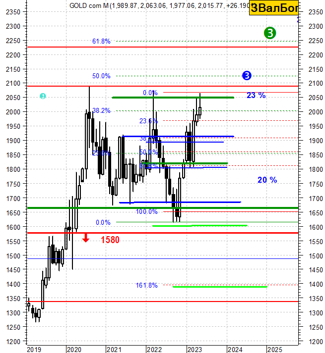 1. Графики к ролику «Выполнение прогноза Золото–доллар. Прогноз на 3-9мес. апрель 2023»