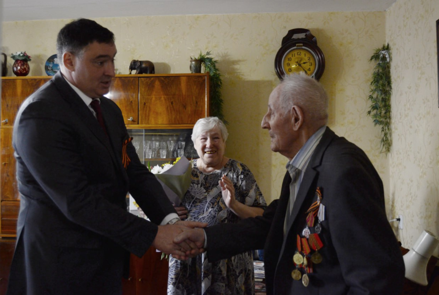 Глава города поздравил Михаила Ефимовича Мельникова. Он участвовал в боях на Белорусском фронте, дошел до Восточной Пруссии и Кенигсберга. За боевые заслуги награжден Орденом ВОВ и множеством медалей.