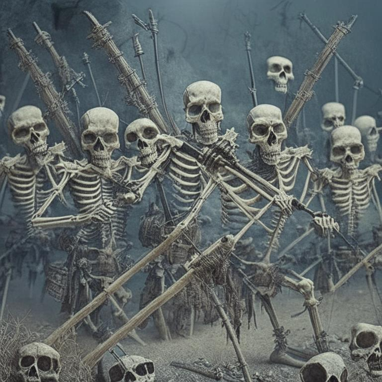 Выйдя из Донжона, я увидел непривычную картину: Полуночник, окруженный ореолом из зловеще-зеленой энергии, водил руками над каменным плацем. Неожиданно из земли поднялись мрачные силуэты, закованные в темную латную броню. Из оружия у них были мечи и щиты. После, мастер достал кинжал и сделал около пяти шагов, разрезая пространство вратами во владения смерти. Оттуда незамедлительно вышла целая толпа безоружных мертвецов. За ними вышло около десяти скелетов-стрелков, вооруженных арбалетами. Следом, некромант начертил на земле три линии, выходящие из одной точки и идущие в разные стороны. Окончив вычерчивание, мастер достал из сумки фиал с алой жидкостью и вылил пару капель в центр рисунка. Тут же линии вспыхнули черным пламенем, и из них вылезло три существа. Внешне, они были похожи на собак, только очень больших костлявых псов, с огромными клыками. -Знакомься, Шов. Именно они сегодня станут твоей тренировкой. Позволь перечислить их: семьдесят простых мертвецов, они выигрывают за счет чи