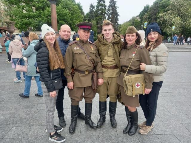 - Мы приехали из Воронежа двумя семьями, - рассказала корреспонденту РИАЦ Татьяна, которая вместе с мужем и сыном облачилась в экипировку бойцов времен Великой Отечественной, - чтобы посмотреть этот прекрасный город. Мы в восторге, потому что у нас такого праздника 8 мая нет, поэтому очень приятно, что такой дух патриотизма надо прививать, воспитывать передавать память которая должна жить наших детях.