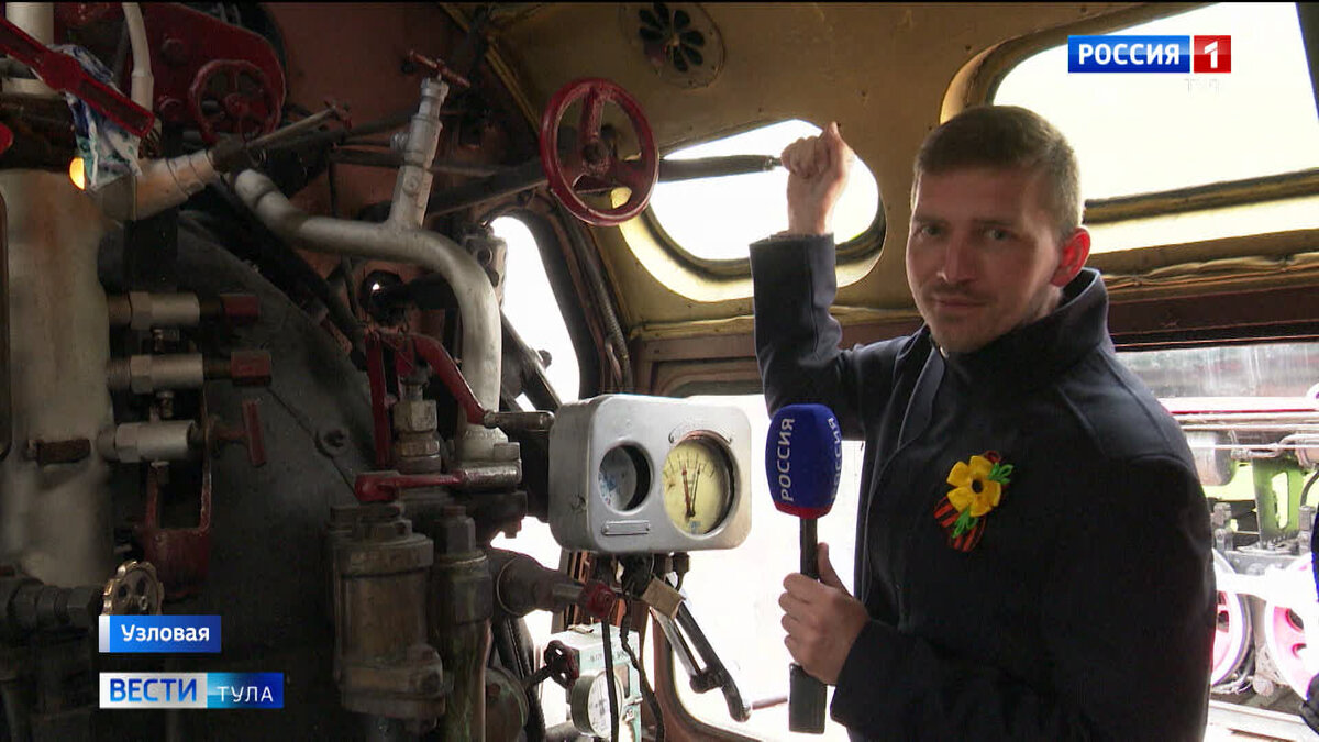 Ранним утром под оглушительный гудок – красавец-паровоз прибывает на станцию города воинской доблести Узловая. Сергей Бендюков паровыми гигантами управляет уже 15 лет. Сергей Бендюков, машинист: Тут нет никаких приборов, которые помогают тебе везти поезд. Тут все надо ощущать кончиками пальцев, на слух, на взгляд, на ощущения, что называется. В этом особый шарм работы на паровозе. А вот – уголь, главная движущая сила паровоза, все, как в годы войны, все по-настоящему, топлива хватало буквально на несколько часов, но за это время паровоз успевал довезти солдат будь то раненые или боеприпасы до точки назначения. Накануне 78-й годовщины Победы в Великой Отечественной войне по местам боевой славы региона отправилось сразу несколько специальных поездов, из четырёх городов области – Мордвеса, Белёва, Черни и Ефремова. Поезда Памяти проехали по местам боевой славы, их пассажиры возложили цветы к мемориалам и воинским захоронениям на начальных станциях и промежуточных остановках. В этом году а