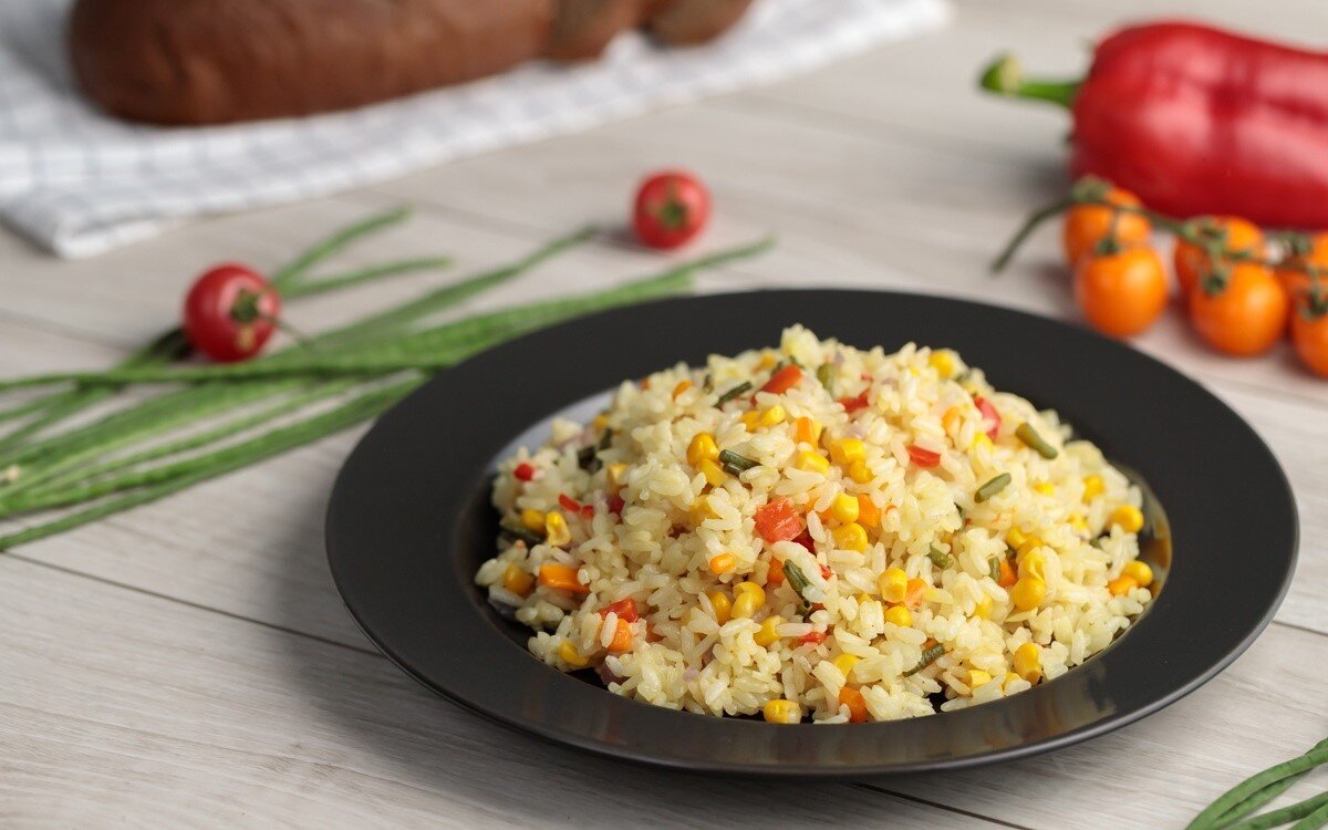 Ингредиенты: Приготовление: Морковь и сладкий перец нарезаем мелким кубиком. Чеснок измельчаем (на мелкой тёрке, чеснокодавилкой и т.д.), зелёный лук шинкуем. Набираем в кастрюлю воды - 500мл., доводим до кипения, солим и добавляем две столовых ложки растительного масла. 250 г. риса тщательно промываем и засыпаем в кипящую воду. Рис варим помешивая, на среднем огне. Как только вся вода исчезнет, накрываем крышкой и ставим на самый медленный огонь. Через 2 минуты выключаем огонь и оставляем рис доходить. Затем переложить в глубокую тарелку и убрать в холодильник — для жарки он понадобится холодным. Два яйца разбиваем в отдельную, глубокую тарелку и добавляем в них соевый соус, хорошо взбиваем вилкой. На большой сковороде разогреваем растительное масло, закидываем чеснок и за ним морковь. Обжариваем на сильном огне до золотистости в течение 1-2-х минут. Затем добавляем сладкий перец и кукурузу. Обжариваем всё в течение 1-2-х минут. Добавляем специи по вкусу. Теперь засыпаем наш готов