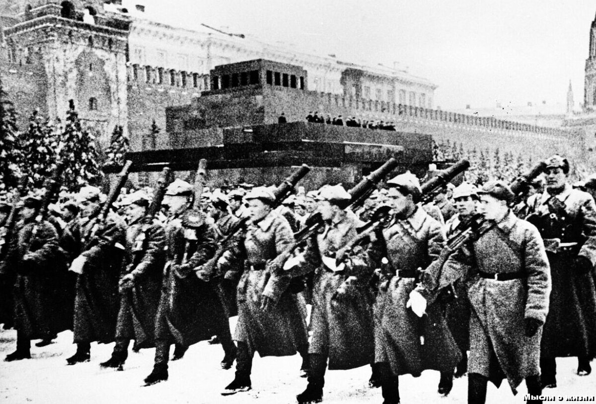 И парад состоялся 7 ноября 1941 года. Войска проходили мимо Мавзолея и прямо с парада отправлялись в бой. На Мавзолеи парад принимали руководители Советского государства. Практически у всех высших руководителей страны сыновья в это время сражались на фронте. Некоторые уже погибли. И фашисты были отброшены от столицы. Это стало началом перелома в настроении людей, а стало быть и в войне.