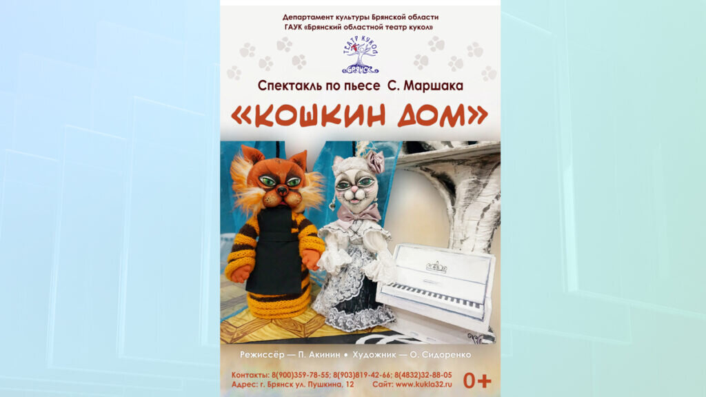Маленьких брянцев областной театр кукол приглашает на спектакль по пьесе Самуила Маршака «Кошкин дом». Мероприятие состоится 20 мая в 11 часов. Длительность спектакля 40 минут. Премьера постановки состоялась в 2017 году. Режиссер Павел Акинин. Спектакль «Кошкин дом» по пьесе Самуила Маршака — это веселая, зрелищная сказка, наполненная песнями и танцами. Зрители снова встретятся с пушистой щеголихой Кошкой и её многочисленными гостями. Замечательно и весело живут бородатый Козёл с Козою, сладкоголосый Петух с Курицей-наседкой и невоспитанная барыня Свинья. И только маленькие котята грустно поют сиротливую песню: «Тётя, тётя кошка, выгляни в окошко…». 0+ ФОТО: Брянский областной театр кукол Юных брянцев приглашают на спектакль «Кошкин дом»