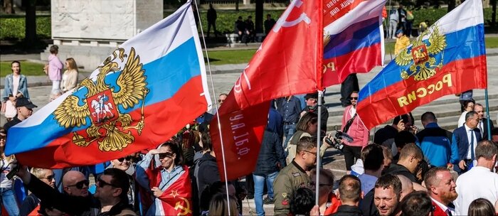 На памятных мероприятиях в Берлине российские флаги все еще запрещены.