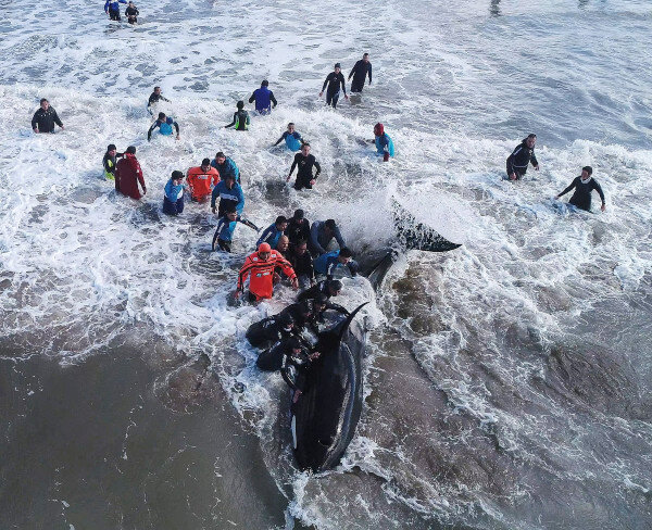 В ходе спасательной операции на берегу курортного городка пострадавших косаток отбуксовали обратно в море. В Аргентине в курортном городе Мар-дель-Плата волной на берег выбросило семь косаток. Местные жители пытались самостоятельно помочь им. На кадрах видно, как добровольцы стараются помочь животным. Люди пытались вытолкнуть косаток с территории пляжа обратно в море. Всех косаток вернули в море, одно животное погибло. Вес косатки составляет около 2 тонн, переместить ее довольно сложная задача. Нужно отбуксировать косатку как можно глубже, иначе ее волнами снова может вынести на берег. В прошлом году здесь произошел такой же массовый выброс косаток. Фото: twitter.com Читайте также: В Арктике за август лед стаял на треть больше обычного У дельфинов Ла-Манша обнаружили высокое содержание ртути Эксперты "Росконтроля" проверили качество российской трески Британские инженеры создали робота, парящего над водой как летучая рыба В арктической зоне из-за таяния вечной мерзлоты появились "оазисы