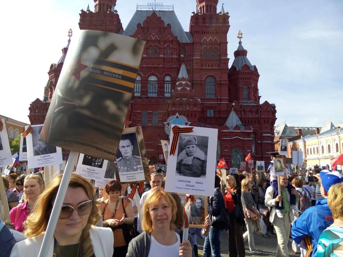На фото справа портрет своего отца Гарбузова Ивана Ильича проносит моя жена, Ирина.